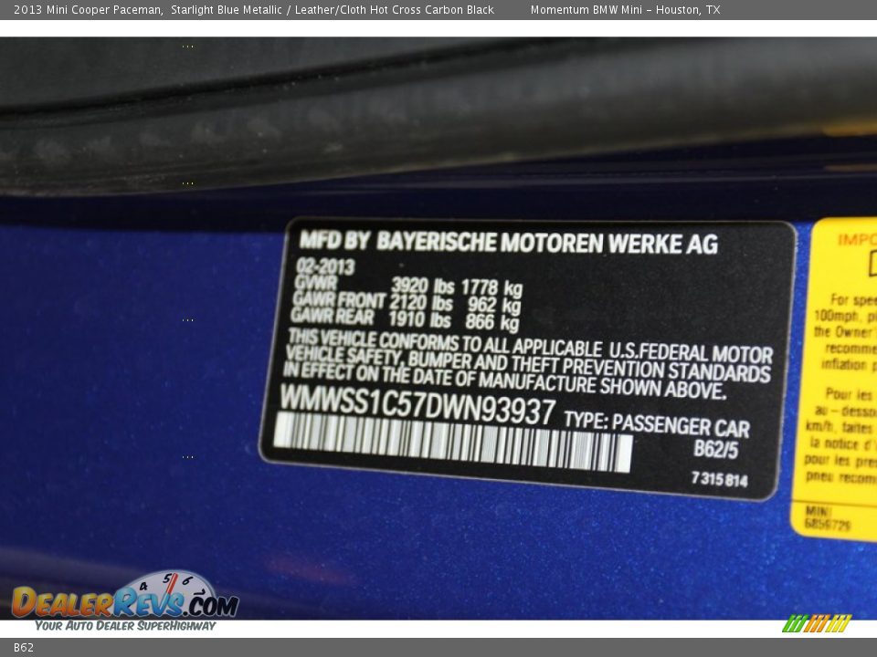 Mini Color Code B62 Starlight Blue Metallic Dealerrevs Com