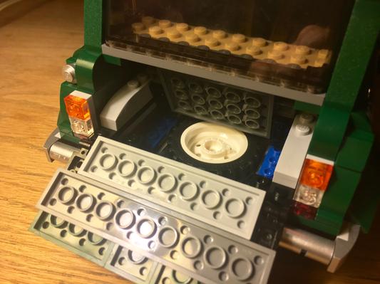 This beautifully crafted lego brick replica of the classic mini cooper mk vii is full of authentic details from the classic green and white color scheme with white wing mirrors and racing stripes to the opening doors hood and trunk sporty fog lights detailed engine and separate spare tire compartment.